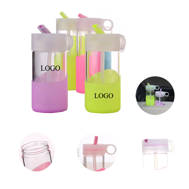 This candy color straw glass cup is portable and convenient, 14oz size fits most of your requirment. Made of quality glass, and surface silicone case can be removed. Carry easily for car, sport, meet, outdoor etc. Your great artwork can be imprint on cup or silicone case, With straw is novel when you drink. Waiting for your inquiry.