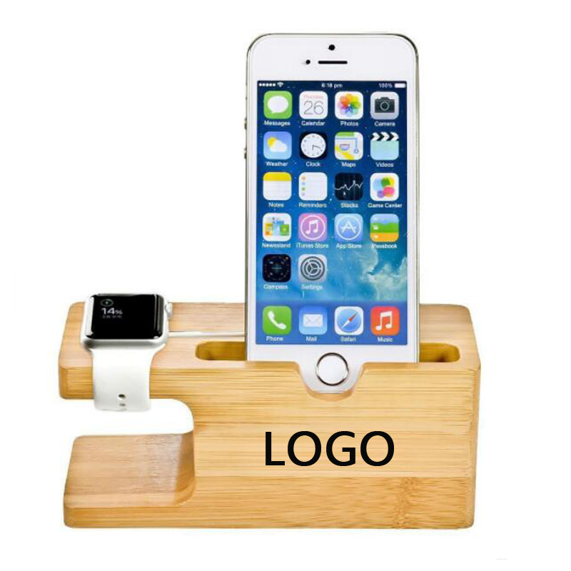Smart Watch's inductive charger slots comfortably in the dock, simply place on the platform and works as clock while charging. A great place to keep your smart watch and phone clean and safe at night while charging. Bamboo Wood stand is as solid build for better stabilization and a natural look for a classy chic home or office. Bamboo stand only, accessories NOT included. Made of natural bamboo, items will be in nature color. Your logo or artwork can be imprinted on it.