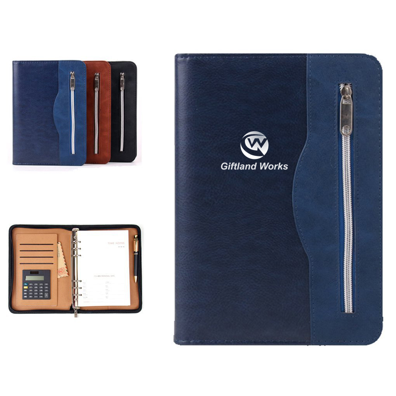 This high end notebook features built in calendar, week day to page memo and calculator, convenience for your to mark date, take memo and calculate, helps to improve the work efficiency; it has 3 card slots and 1 large pocket, you can put your money, bills or receipt in it. the pen holder loop is convenient for you to hold your pen. A classic looking zippered portfolio designed by business professionals to help organize and create more flexibility. You can freely reorder and organize your note with the ring binder paper. The list price includes a one color imprint.