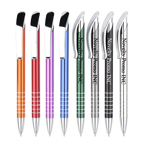 High quality ballpoint pen, made from aluminum pen body and plastic silver plated trims. Laser engraved grip. Your LOGO can be laser engraved or silk screen imprinted on the pen body. Many colors for your option.