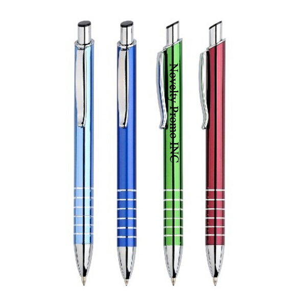 High quality ballpoint pen, made from aluminum pen body and plastic silver plated trims. Laser engraved grip. Your LOGO can be laser engraved or silk screen imprinted on the pen body. Many colors for your option.