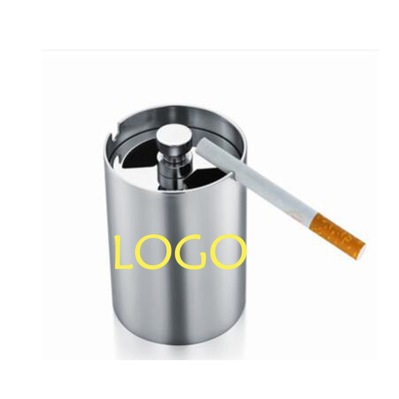This ashtray is made of stainless steel so it has a good abrasion resistance but still light. You can put it at home or put on your car as well. The size is diameter 2.48"xheight 3.78", so it fits most automobile cup holders. Seal design make the ash stay at the bottom. Never let ash fly away make your desk or your car be dirt. When you only press the button on the top, it will be opened. We can laser your LOGO or artwork on it.