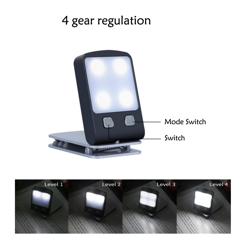 Our reading lamp has 90 degree vertical adjustment and 360 degree rotation adjustment, 4 level luminosity control, enough for you daliy reading needs. USB charge port is easy for your life, you can charge by your laptop, power bank, etc. One time charge can be used for several hours. Clip design can keep your reading lamp anywhere. Your LOGO or artwork can be imprinted on it.