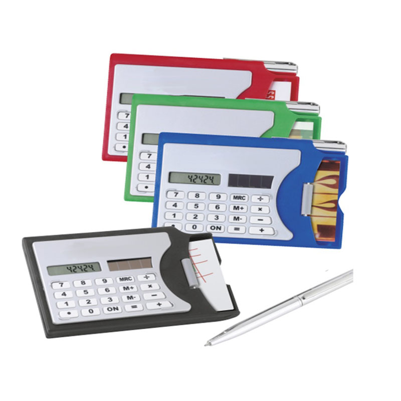 New Arrive! Make productivity a priority with these Solar Calculator and Business Card Holder, including silver metal twist ballpoint pen with blue ink. Have the capacity to hold a number of cards as well as a pen so you're ready for anything in the office. Add your brand in a choice of printed colors for a great way to remind them of why your services are the smart choice.