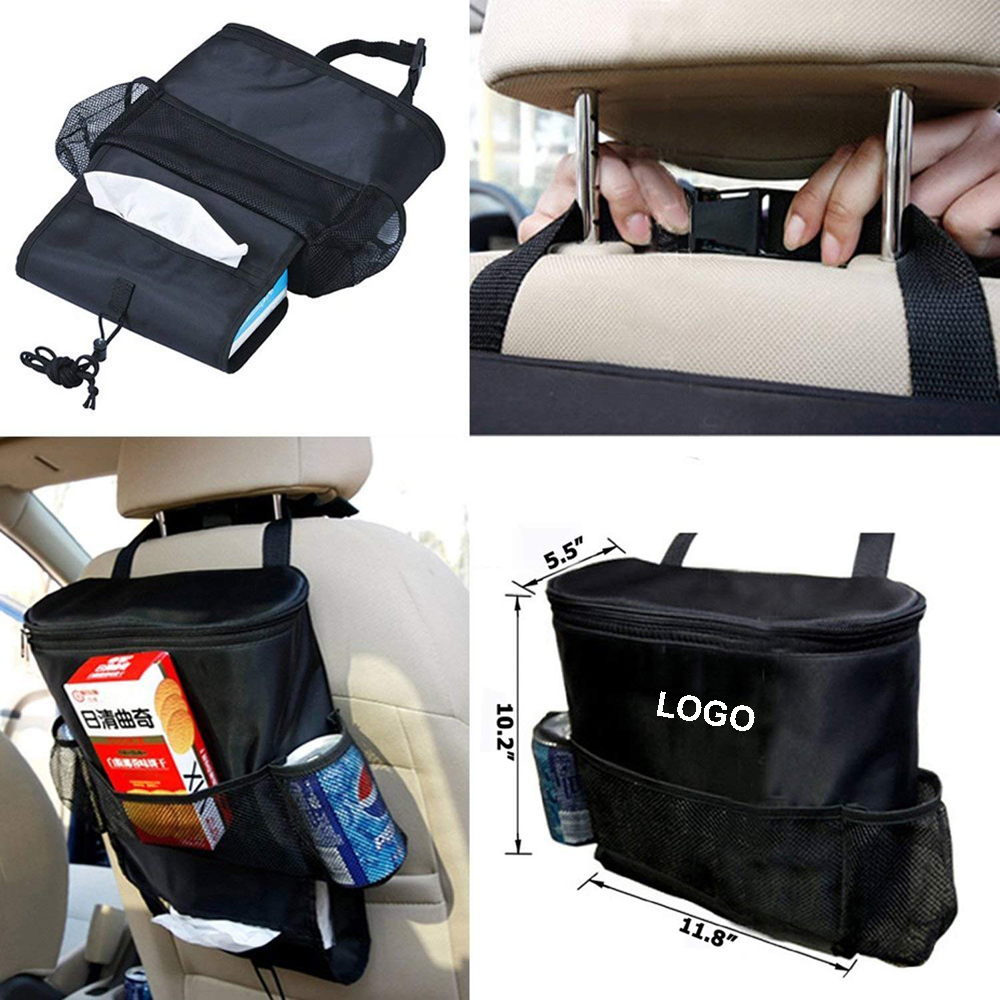 Made of durable oxford fabric material, this cooler bag is a sturdy backseat car organizer. Behind the Seat Organizer/ sturdy car organizer with Insulated deep pocket for drinks and large snacks. Also has mesh breatheable pockets for smaller food storage, tissue Holder. Item folds nicely and is perfect for keeping as a foldable car trunk organizer.