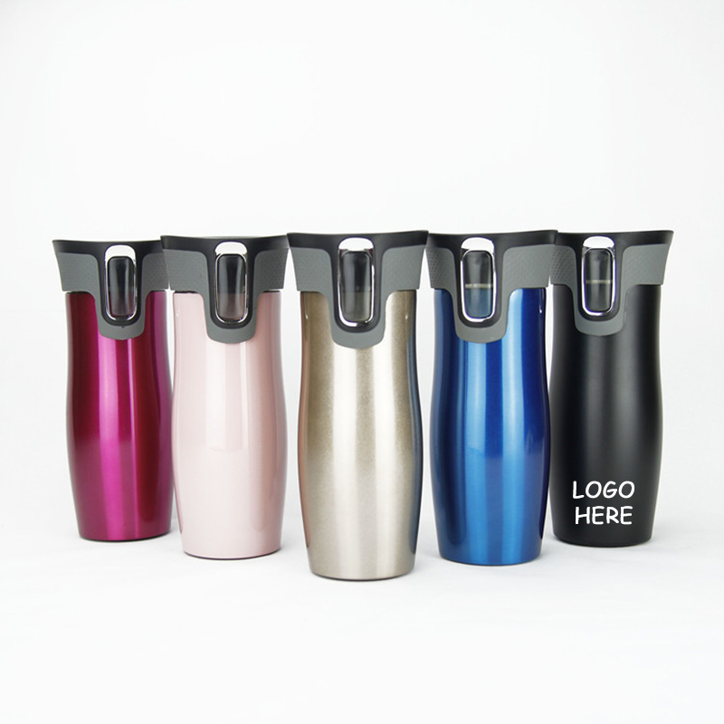 Car Insulated Travel Cup, made from durable BPA-free food grade 18/8 stainless steel. Keep beverages hot or cold for a long time. Ensures no accidental spills and allows for convenient one-hand operation when driving, also use at home or office settings. 15oz/450ml capacity. Your customized logo is available.