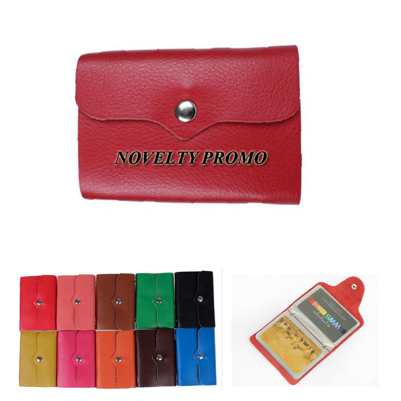 This high quality card holder, made from real cowhide. Size is 4 1/8"x2 3/8", suit for your credit cards, business cards and any other shopping cards. 26 card pages inside. Anti-demagnetization and double Anti-tear desigh for each film page. Many colors for your option. Your customized LOGO can be silkscreen imprinted or debossed.