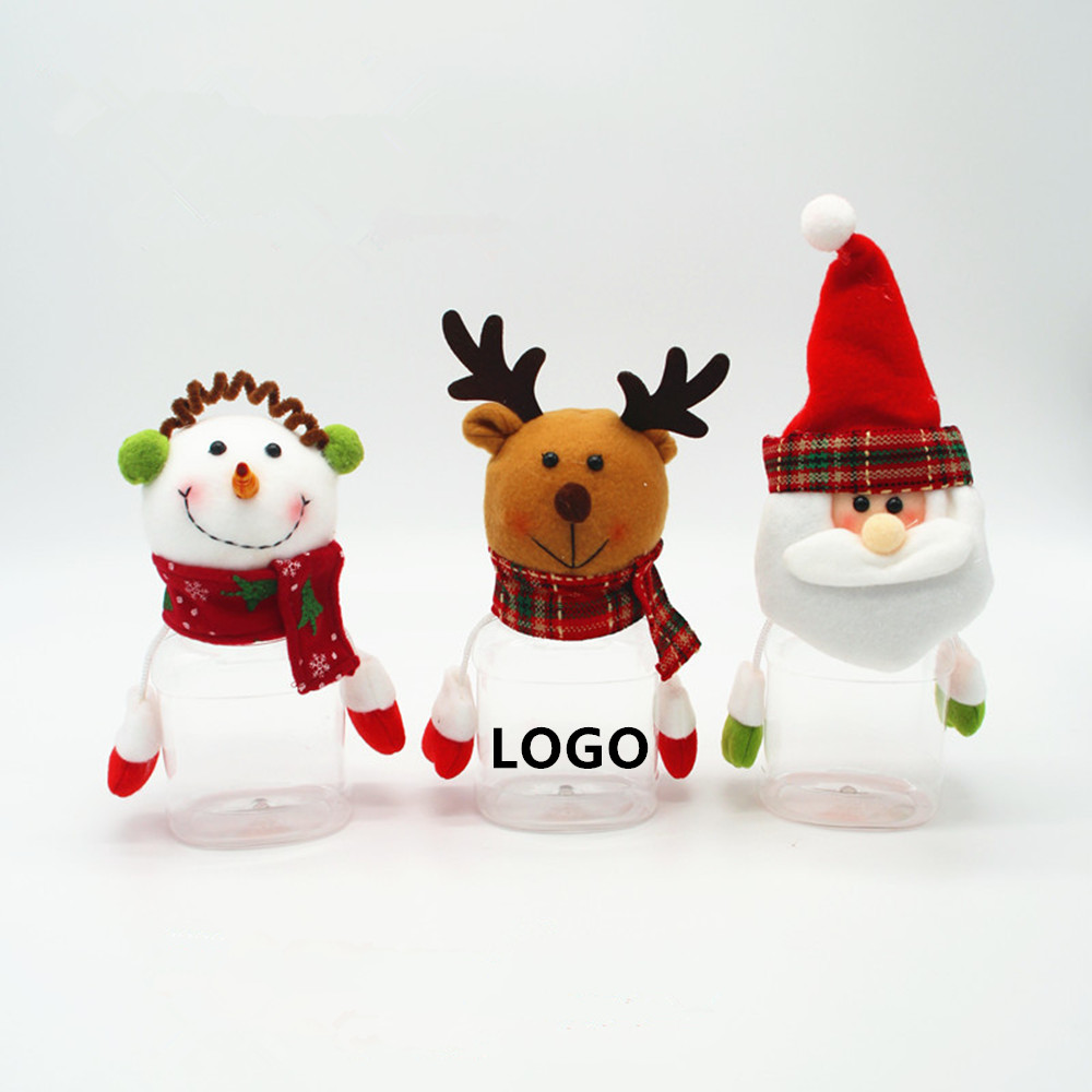 There are three different Christmas cartoon characters. The candy bottle is made of plastic and nonwoven fabrics. You can store candy, gum, snacks, and other small items. It can also be a great Christmas present. You can use it to decorate party and home, or as promotional gifts. Your LOGO or artwork can be imprinted on it.