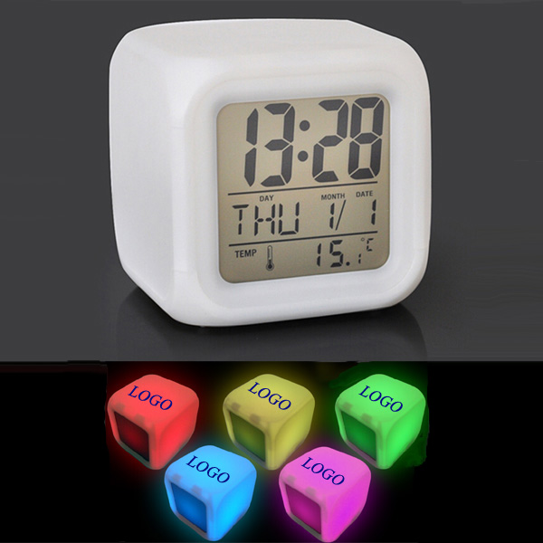 This special LCD alarm clock changes color and includes calendar and thermometer functions. Easy to get attention wherever it goes, to help your promotion at conventions, anniversary activity, and other promotional events.