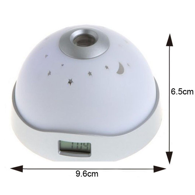 | Feature : | Magic Moon & Stars Projection Projector Silent Alarm Clock 7 Color Change LED Night Light |