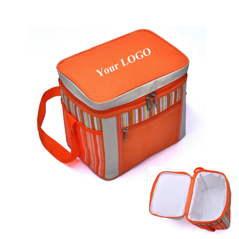 6-pack Lunch Cooler Bag in our new mixed colors line design. Made from 600D Nylon and PE Foam. One zipper pocket on the front. One mesh pockets on both sides. Insulated and heat-sealed with lining inside. Two locations for your option to imprint your customized LOGO.