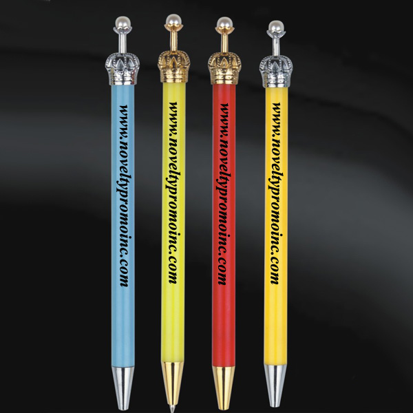 Crown Ballpoint Pen, made from plastic pen body and metal crown. Length is 5.9". Press the crown to control the pen point's movement. Great promotional items for children and schools, girls will love it very much.