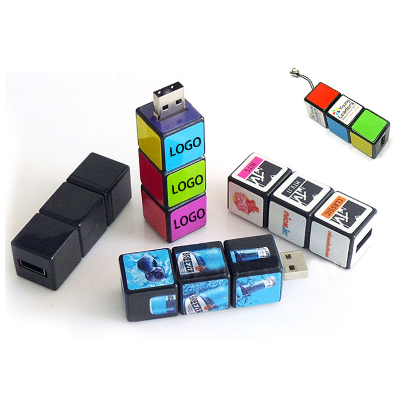 This Cube USB flash drive is perfect for your next giveaway campaign! This custom USB product provide you with 12places for a logo, maxmizing exposure of your brand. Cube shaped is novel and have a section can be rotated. The price is based on 4GB. Custom storage is welcomed (up to 32GB available), a small strap is convenient for your carrying. Get the lastest price from us now.
