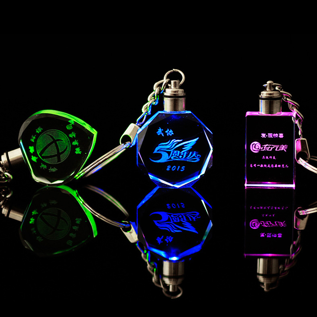 | Feature : | Personalized Custom LED Laser Engraved Etched Crystal Glass Keychain Key Rings for Gifts |