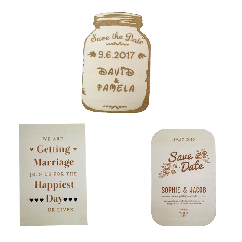 Our wooden invitation cards are widely used as wedding and party invitation cards, activities souvenirs, pendants and so on! Price including double laser engraving. Many types for your option. Custom shape is welcome!