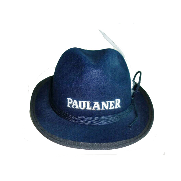 | Feature : | Custom felt fedora or jazz hat with feather and imprinted band. |