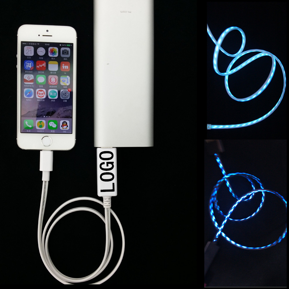 This excellent, reliabel and durable cable offer fast charge and steady data transmission for your phone. Illuminating flowing light in darkness, easily find your cord or phone at night. You can update music and data to your mobile phone through this data cable. Automatically shut off LED light when fully charged. Your LOGO or artwork can be imprinted on it.
