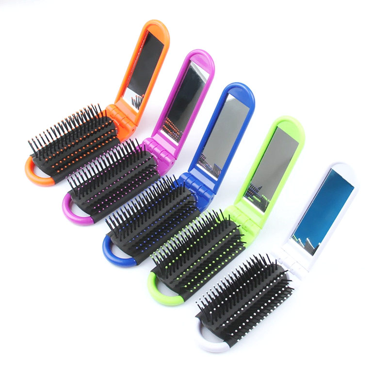 The 8" foldable combination purse hair brush & mirror comes in blue, red, pink, green, yellow and pink, randomly shipped upon availiabiility. This combo of brush and mirror comes in a small travel size, fits right in pocket, purse, clutch bag. It can fold easily and you can put the comb in your handbag and take it anywhere as you like.