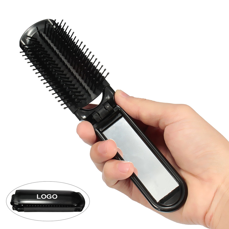 Folding Hair Brush With Mirror Compact