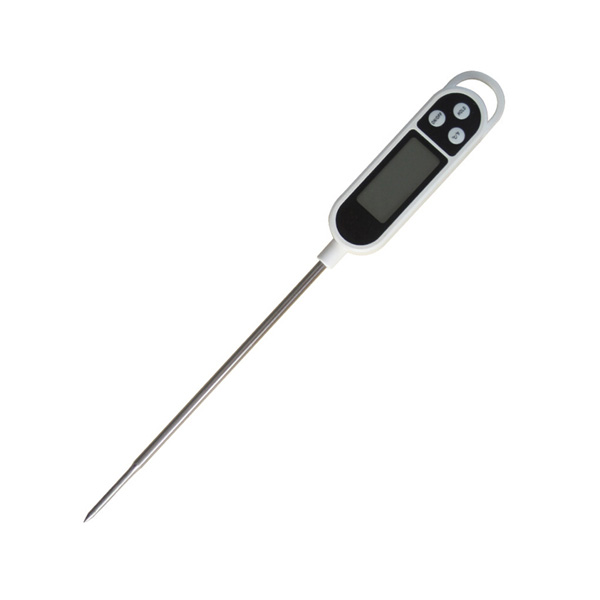 Digital BBQ Thermometer or food thermometer with large LCD screen. Your great partner when go camping or picnic, suit to test the temperature of milk, bathtub water, experiment items and so on. Switch between F-Fahrenheit and C-Celsius. Temperature range (F: -58 to +572 or C: -50 to + 300). Memory of last measuring. Saving power: auto-off after 15 minutes of no-operation. Made from ABS and stainless steel. Size is 9.6"x0.78".