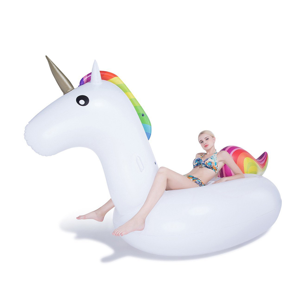 Made from heavy duty materials, this giant inflatable unicorn pool float is durable enough to stay inflated throughout the season. Make your backyard the most photogenic scene of summer. Make it a party toy and take this giant inflatable Unicorn pool toy to festivals or a party. Measuring in at over 8' with a weight capacity up to 400lbs (2 adults or a gaggle of 8-year olds), it's great for kids and adult children at heart, letting you lounge, play or race with your friends at the pool, beach or lake.