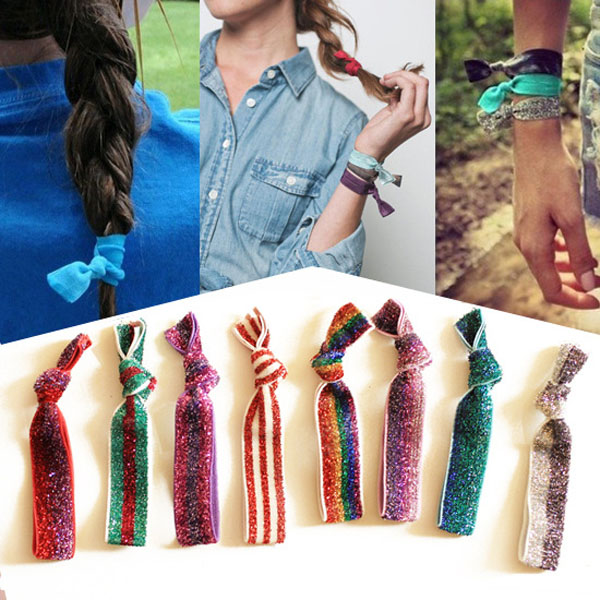 This hair tie also can be as trendy wristband. Made of elastic fibers. Also can imprint your brand logo for business. Many color options for you, popular items for business, events, sport etc.