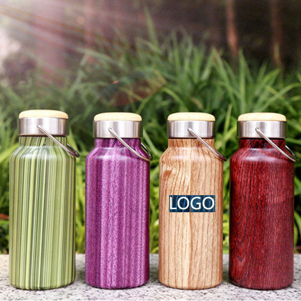| Feature : | 13 OZ Imitate Wood Vacuum Water Bottle With Metal Handle. |