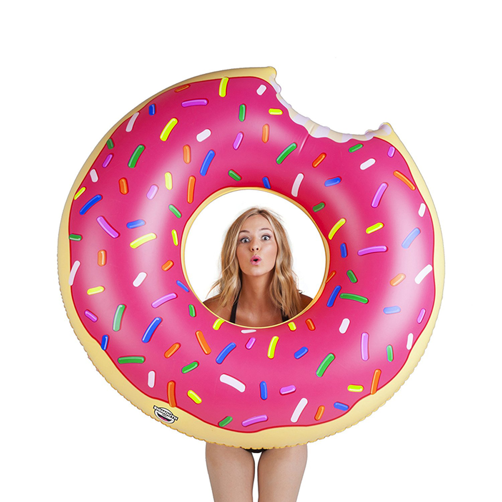 Custom cute shape donut pool swim ring is made of high quality durable PVC material, comfortable and soft. Scratch and tear resistant, more flexible and safety. Its carry and store does not occupy a space, product surface is smooth and clean.The modeling of this swim ring is a doughnut,novel and stylish. Best choice for summer events with full color imprint on the life ring. We also have more different sizes for adults and children, welcome to inquire us.