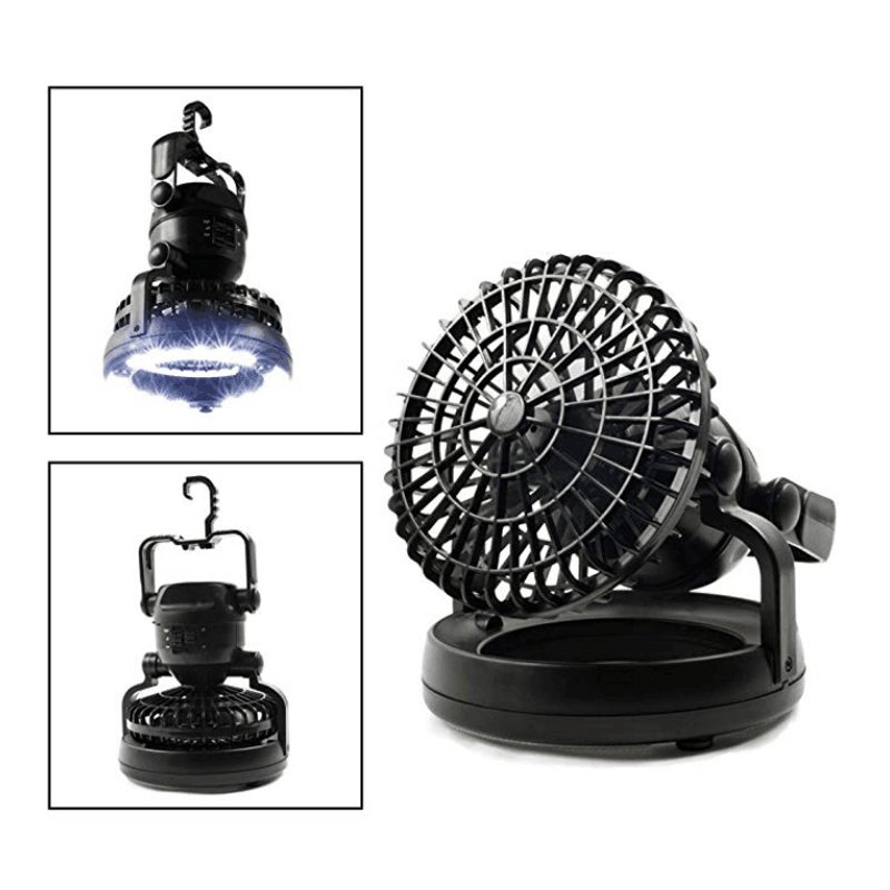 Keep you cool on camping trips and light your tent too with our LED tent light & fan. Enjoy some of the comfort of home while you experience the great outdoors. Simply hang the camping combo LED lantern and fan from your tent or shelter, or stand it on its base and take pleasure in hours of light and fan. All price includes battery.