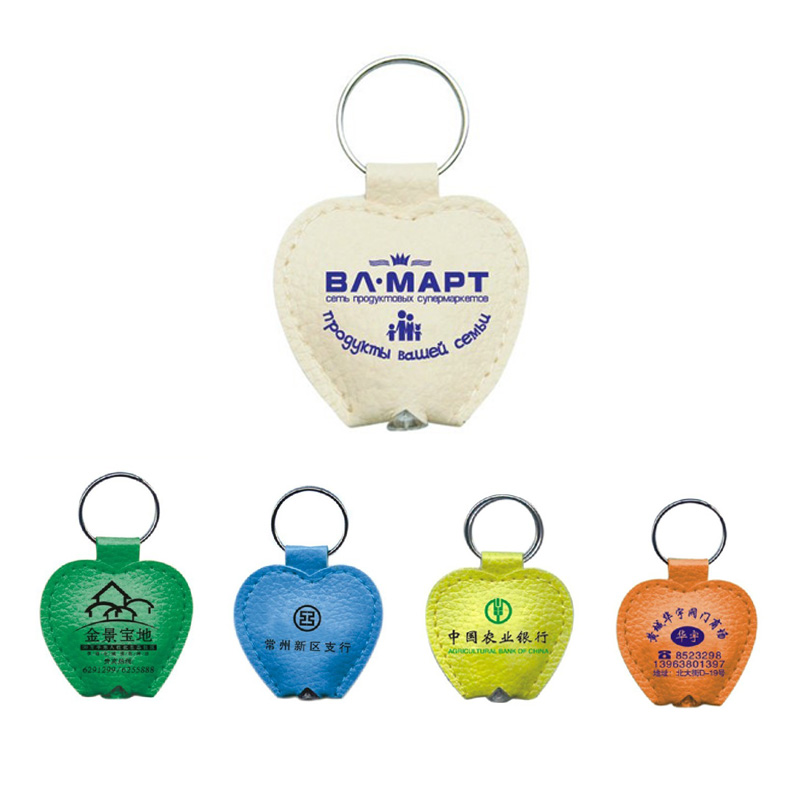 Leather LED Flashlight with Keychain. Apple shape,made from PU material,ECO-Friendly.It's not only a decoration, but also an useful flashlight. Your LOGO can be imprinted on the leather surface. Great and cost-efficient promotional item.