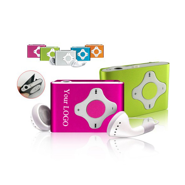 This fashionable mini MP3 is made from aluminum alloy. Audio formats supported: Support MP3/WMA/WAV audio formats. Built-in rechargeable lithium-ion battery. USB power line, 2GB storage TF card and earbud included. Power refill per hour can work for 3-4 hours. Each one packed in an acrylic case. Your customized LOGO can be imprinted or laser engraved on the bottom or on the backside.