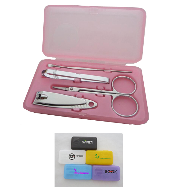 Set includes tweezers, scissors, nail clipper and cuticle pusher which are packed in a spectacles case. The case can be printed with your logo.