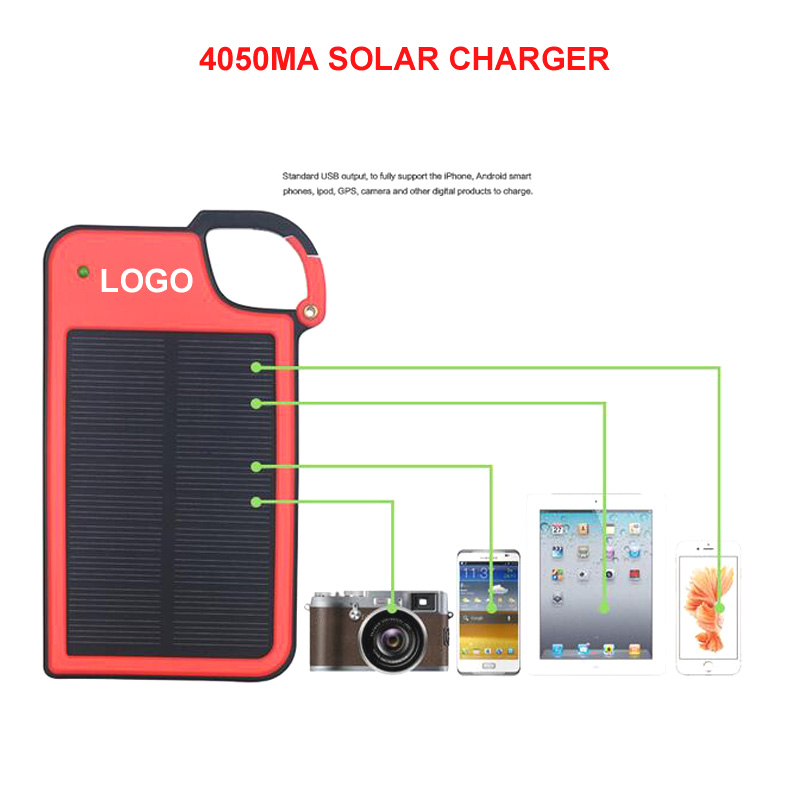 It uses Class A Li-Polymer and the capacity is 4050mAh. Power efficiency is 90%. With emergency LED torch, make more convenience for walking at night. The electric current of output and input are over 1000mA. With 0.8W monocrystalline solar panel. Not only charge by sunshine or bright light, but also charge by USB adapter or PC. Convenient to carry with a hook hanged on the backpack.