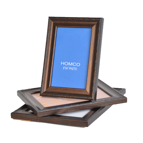 PS frame, photo size 4"x6". 1.5mm glass, color face paper, 2.5mm MDF back with easel,white corners and shrink wrap. We have other size for your option: 5"x7", 6"x8", 8"x10". Oversea production time around 10 days, and transportation time 25-35 days by Sea. Please contact us to inquiry.