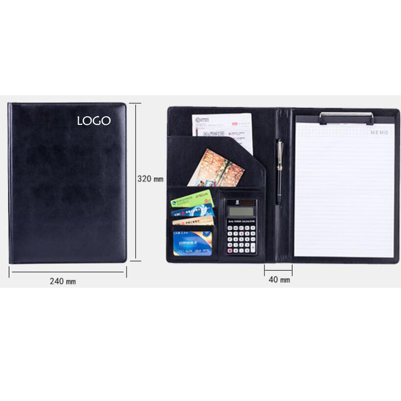 This PU Bussiness Note Clip with a big screen 12 bit calculator, and some data folders. You can write important thing on it, or keep the client data and bussiness cards inside. The 12 bit calculator can help you daily data operation very convenient. The leather material looks very business. Your LOGO can be Embossed on it.