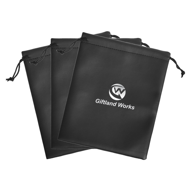 | Feature : | 7.5" X 9" Black Color Pu Leather Double Drawstring Protection Pouch Bag |