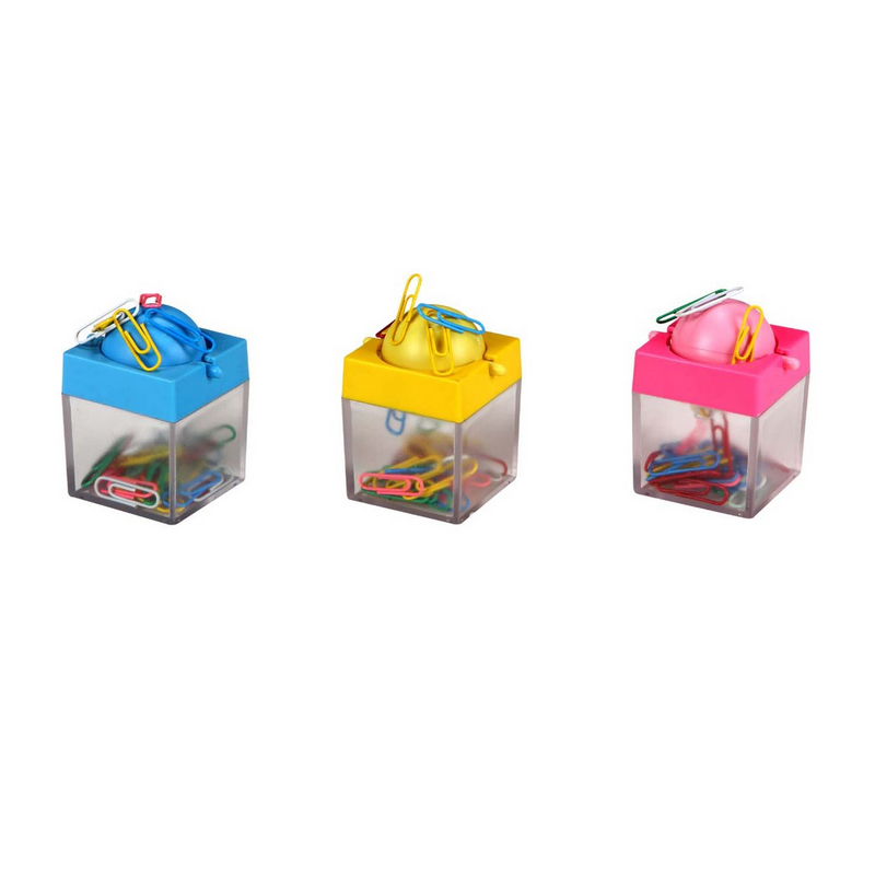 Magnetic clip dispenser, made from plastic and magnet. Features magnetic top for easy access. This paper clip dispenser holds paper clips securely inside so they don't end up scattered all over your desk. Exellent for any work space in the home or office. Many colors and your customized LOGO is available.