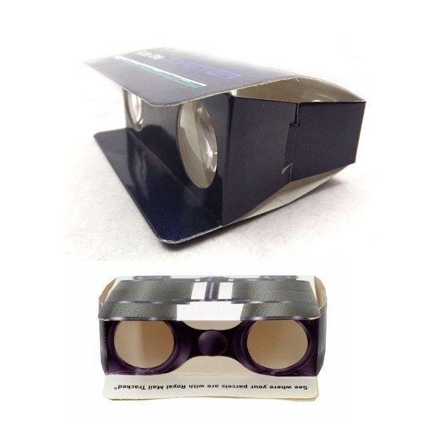Collapsible paper telescope, made from paper board and resin lens. Size is 4"x3"x1.57". Magnification: 3X. Your customized artwork can be imprinted on the whole surface. Great promotional item for any large events, sports meeting, concert, exhibition or other activities.