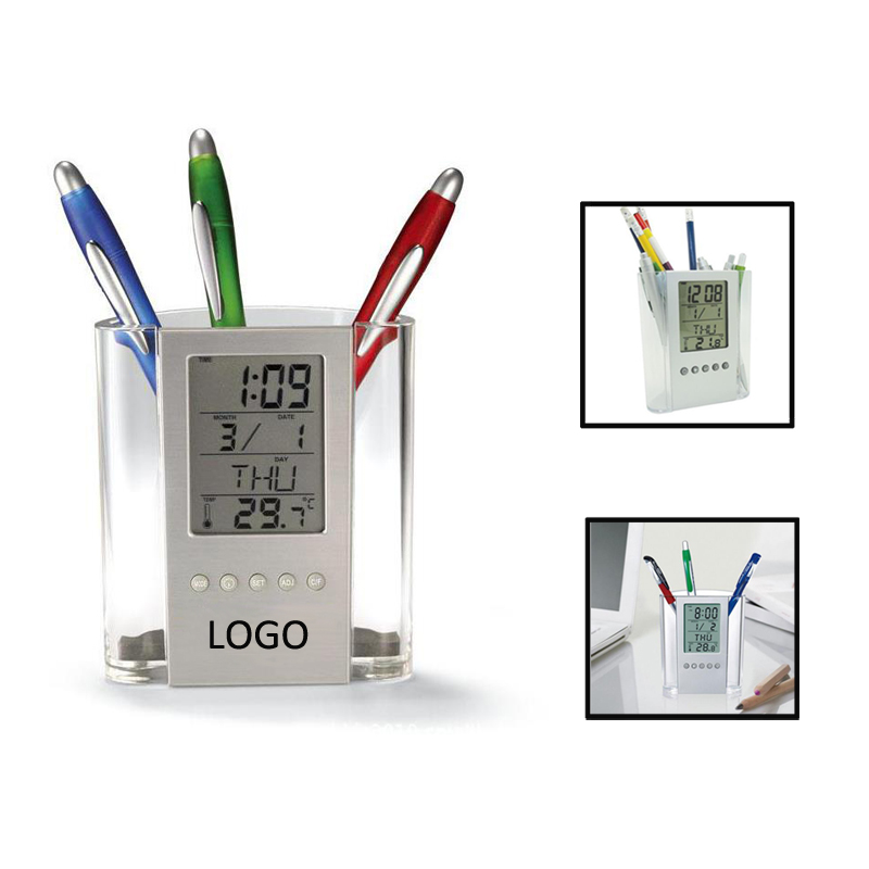 | Feature : | Pen Container With Clock |