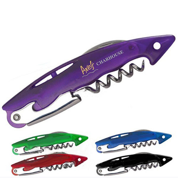 Fish shaped wine opener will give your freshness vision! Sturdy corkscrew and lever allow for easy opening of wine bottles and a durable cutter blade cleanly slices through most stubborn wine foils. Custom color is available, also welcome your logo artwork!