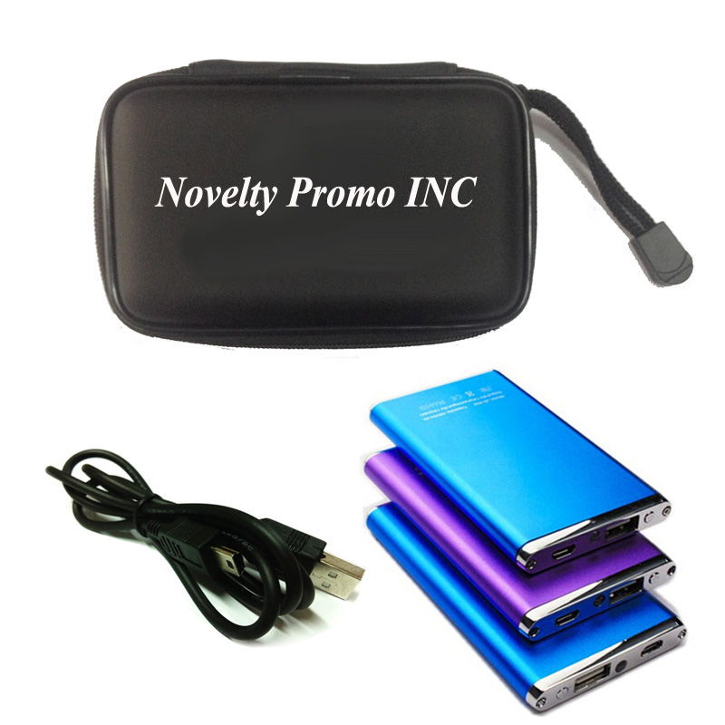 Power charger kit or power bank kit, including one super thin (thickness is only 0.39") handy polymer power bank with LED light, volume 3,000 mAh, one normal USB cable, and EVA foam case. Case size is 5.1"x3.15"x1.57". Cute and portable. Your best partner when travel outside. Your customized LOGO can be imprinted on the EVA case or on the power charger.