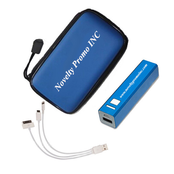 Power charger kit or power bank kit, including one aluminum power bank with volume 2,000 mAh, one 3 in one cable (Can charge I5, I6, Samsung phones and so on), and one EVA foam case. Case size is 5.1"x3.15"x1.57". Cute and portable. Your best partner when travel outside. Your customized LOGO can be imprinted on the EVA case or on the power charger.