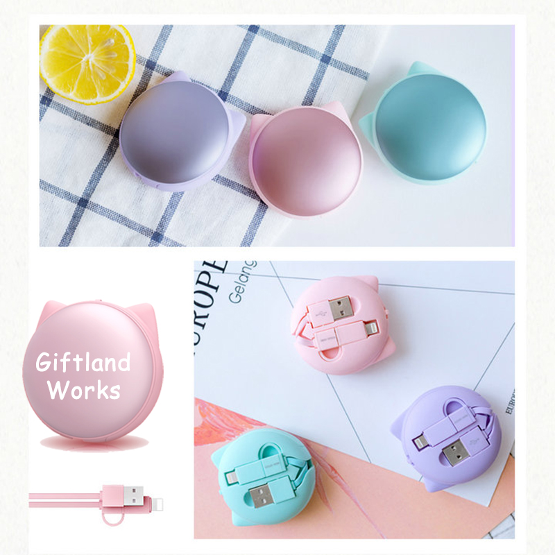 Aluminum alloy shell, soft feel, 8 pin and micro USB cable with high speed data transmission and fast charging. Retractable connector cable in circular shell avoid being knotted. Easy for different daily usage scenarios such as connecting with powerbanks, working in office, driving and etc. Your customized logo is available.