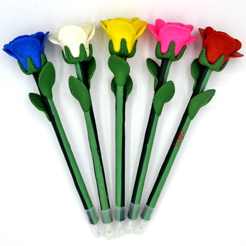 Made of eco-friendly soft pottery material, safe and non-toxic. Rose design, smooth writing, good feeling. Perfect as Valentine's day gifts, decorations, also a very practical pen. Your customized artwork can be imprinted on it.