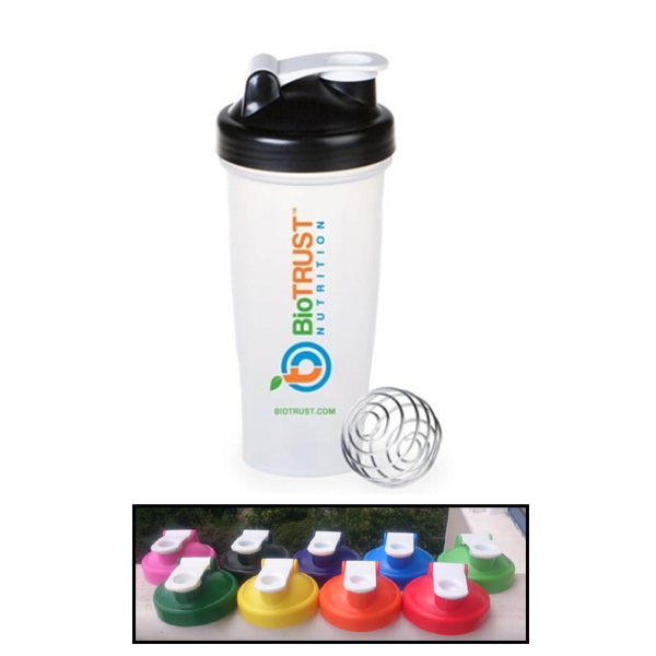 Shaker bottle, 600 ML/21 OZ, made from food grade PP material, BPA free. With a stainless steel ball inside. Perfect for mixing protein drinks, fruit juices and meal replacements. Many lid colors for your option. Your customized LOGO can be imprinted on the outside of shaker bottle.