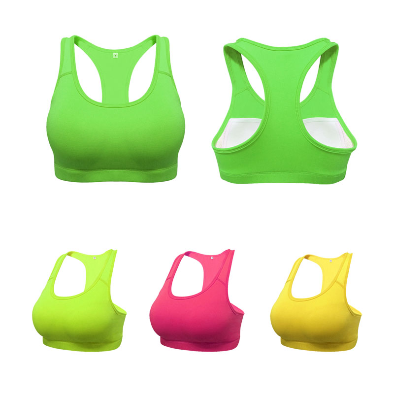 The shockproof sports Bra is made of 90% polyester and 10% Lycra, double layer on the front, fully constructed inner bra subtly enhances your curves, for a shapely natural look. Good elasticity for any exercise. Customized printing is available, looks beautiful and provides lager area for printing, which is the great giveaway for sports event.