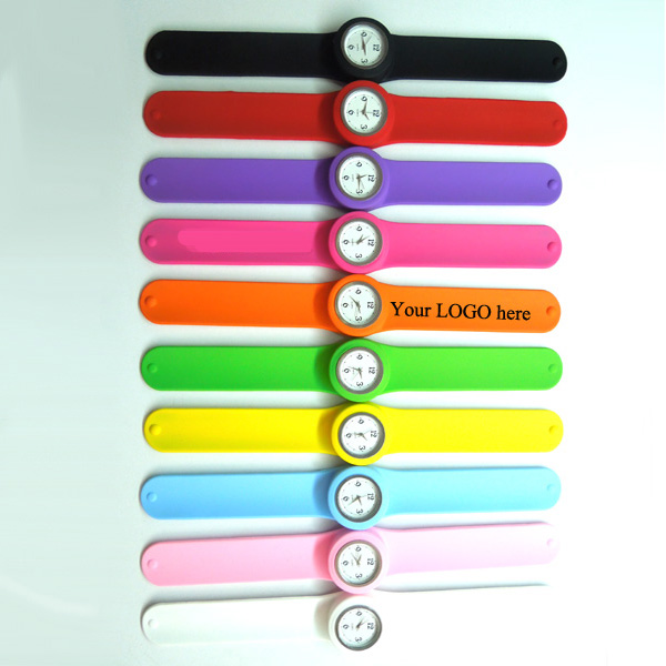 This fashionable silicone slap watch can comfortably fit any wrist. Size is 11"x1.3". High flexibility and non toxic. Many colors and your customized LOGO is available.
