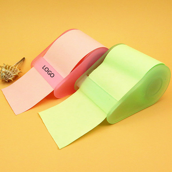 This stick notes like a tape dispenser. 1.9 inches wide by 315 inches long. Not only great for your craft and scrapbooking, but these tapes are great as post--it notes too. Perfect for school, home or office.