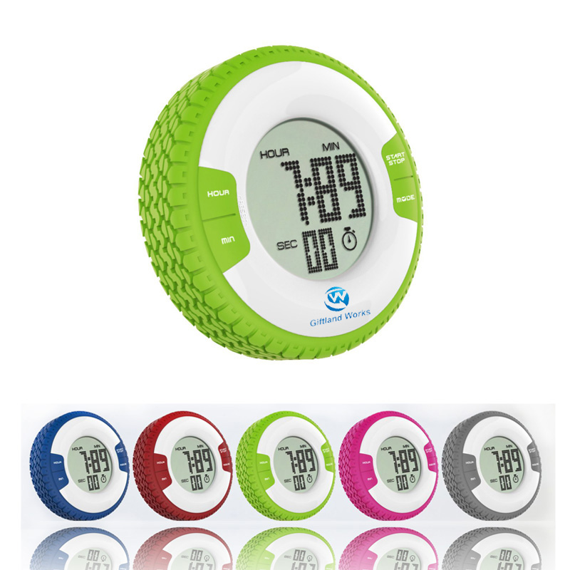 This Tire Shape Timer With Clock is simple and fashionable. It is used in kitchen or refrigerator, setting time for your food. Your LOGO or artwork can be imprinted on it.