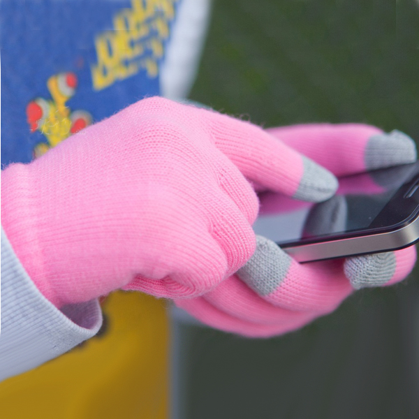 These touch screen gloves, made from fine knit acrylic yarn, with conductive fiber on three finger tips, warm and sensitive. They are applicable to all touch screen mobile phones as well as bank ATM machines.The conductive fiber on the tips is harmless, and will never scratch your screen. Many colors and three size for your option. You customized label can be heat sealed on the wrist position.
